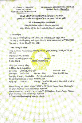 - Tên doanh nghiệp: Công ty TNHH Teady Việt Nam