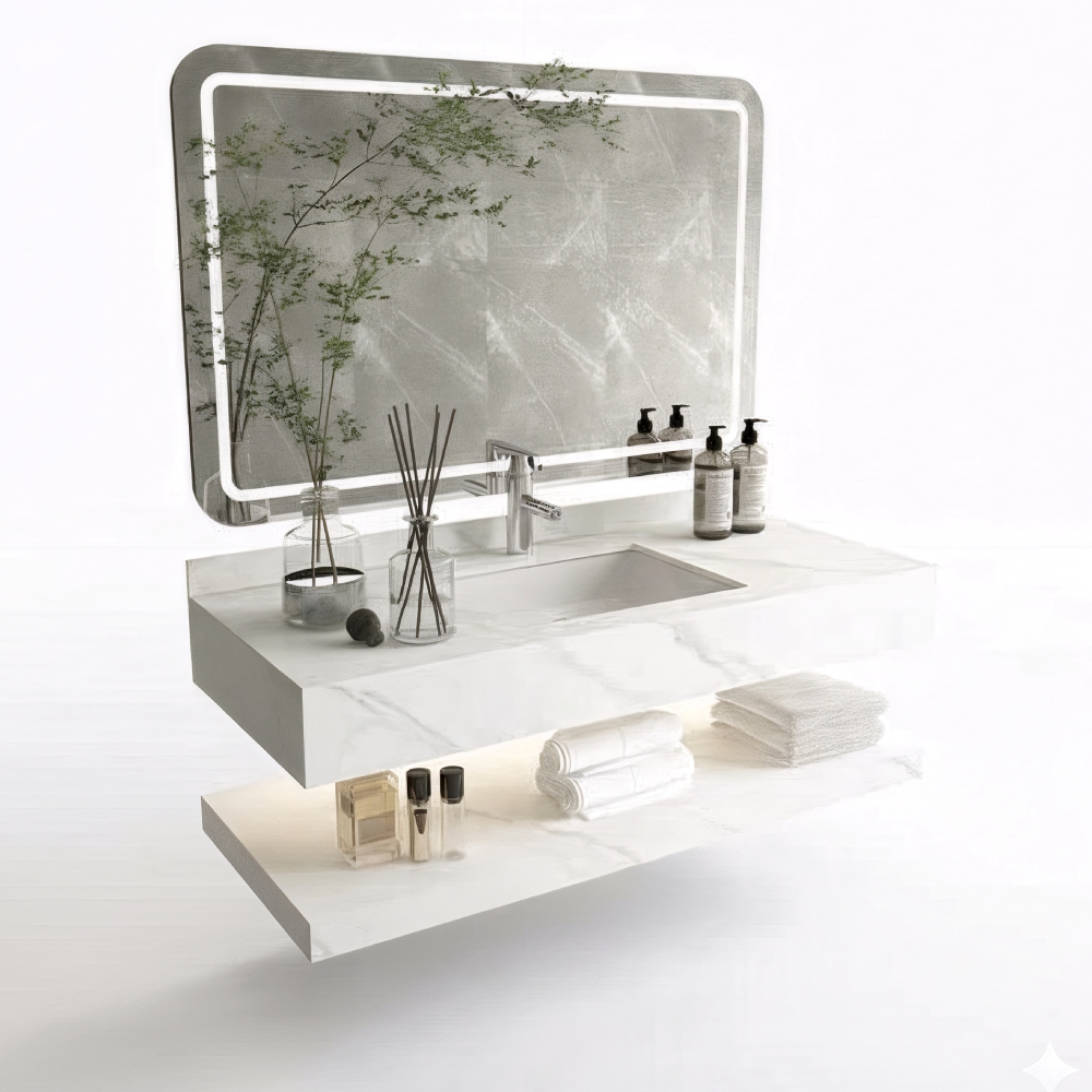 Combo Gương LED + Lavabo Bàn Đá Trắng Cao Cấp TC-1008-9050W