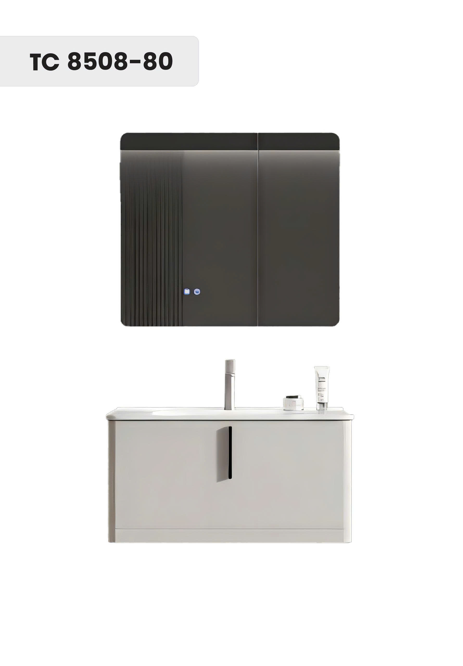 - Chất liệu: Gương led, sấy, chậu sứ, tử nhựa PVC, kháng nước